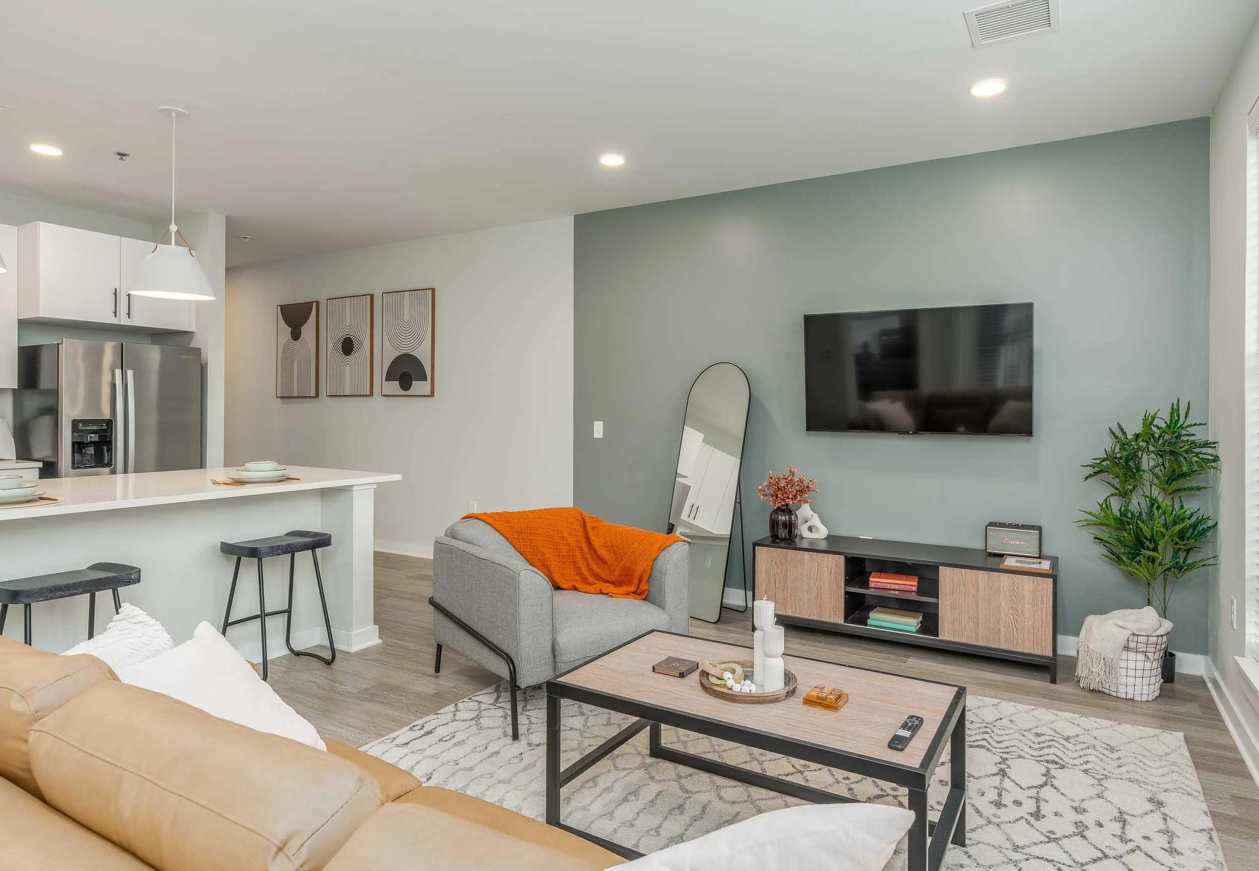 Peer on 7th | Off-Campus Apartments near OSU in Columbus, OH | Living Room and Kitchen