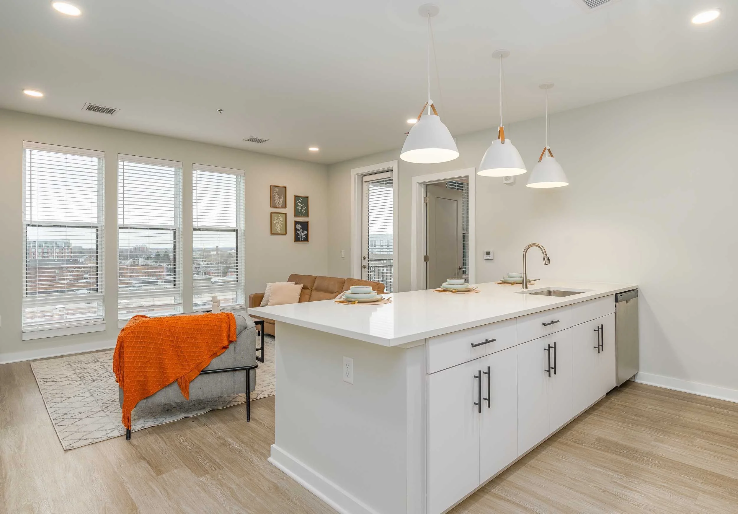 Peer on 7th | Off-Campus Apartments near OSU in Columbus, OH | Living Room and Kitchen View fullsize